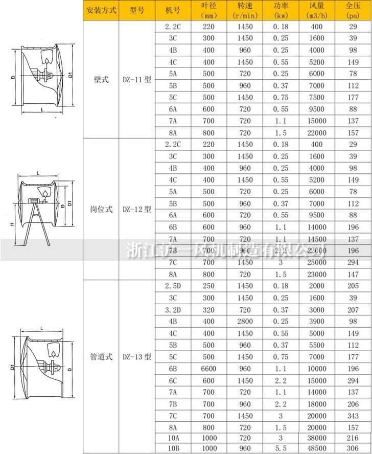 Related articles简要描述:DZ低噪声轴流风机,具有噪声低,风压大,耗电省,等优点,可制成防腐型、普通型、防爆型、防爆防腐型,安装方式分为11型壁式,12型岗位式,13型管道式,机号有2.2C/2.5D/3C/3.2D/4A/4B/4C/5A/5B/5C/6A/6B/6C/7A/7B/7C/8A/8B/8C/10A/10B。可定做耐高温型。