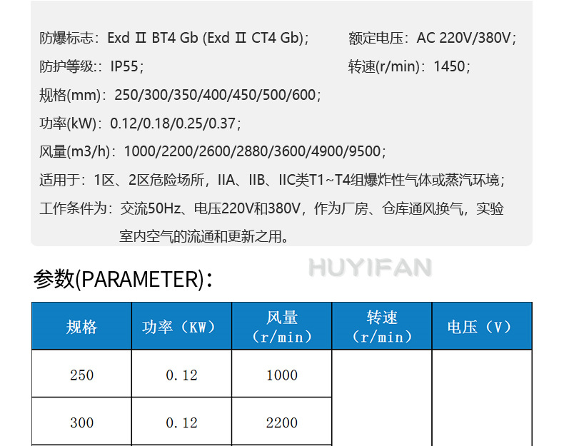 用途 | 1区2区危险场所 | 风机压力 | 低压 |