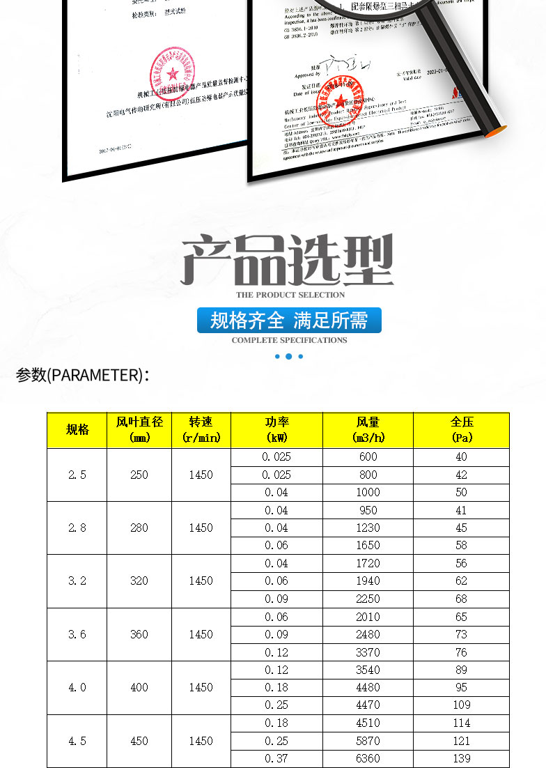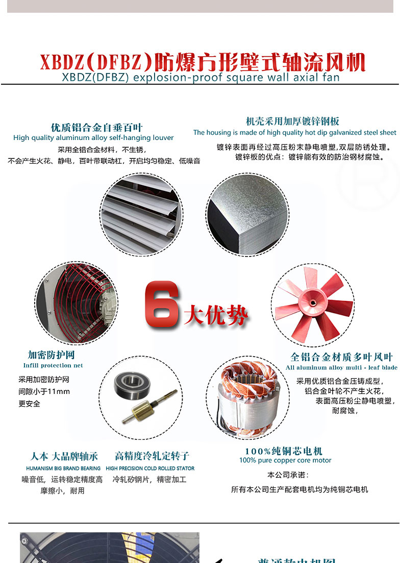 XBDZ系列轴流风机采用从声源入手,低转速,高压力系数的设计方法,研制成宽叶片,大弦长,空间扭曲倾斜式叶型,配用风机专用电机,具有明显的噪声低,轴流风机风量大,耗电省,振动小,外形美观等优点,是一种高效,节能型轴流风机