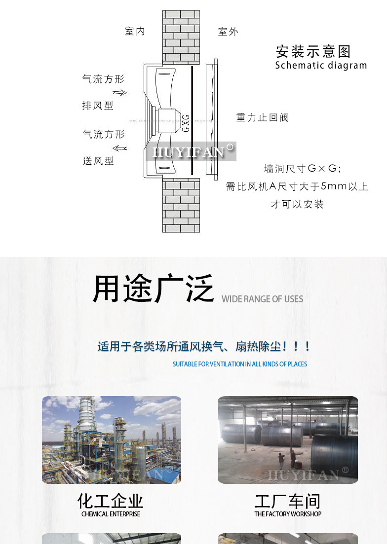 DFBZ系列方形壁式轴流风机采用低噪声风机电机直联传动;整机制成方形,外形美观,墙体预留方孔安装方便;出口风装有自垂百叶,以防止室外雨水和自然风向室内倒灌,具有明显的安装牢固、振动小、噪声低、运行平稳等优点。
